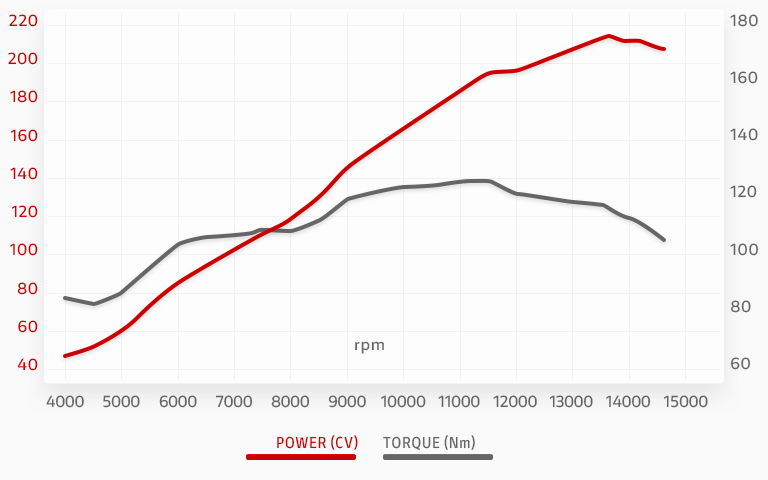 214 hp, 189 kg in weight, an impressive power/weight ratio of 1.13, and an uncompromising riding experience that satisfies every desire, on any surface.