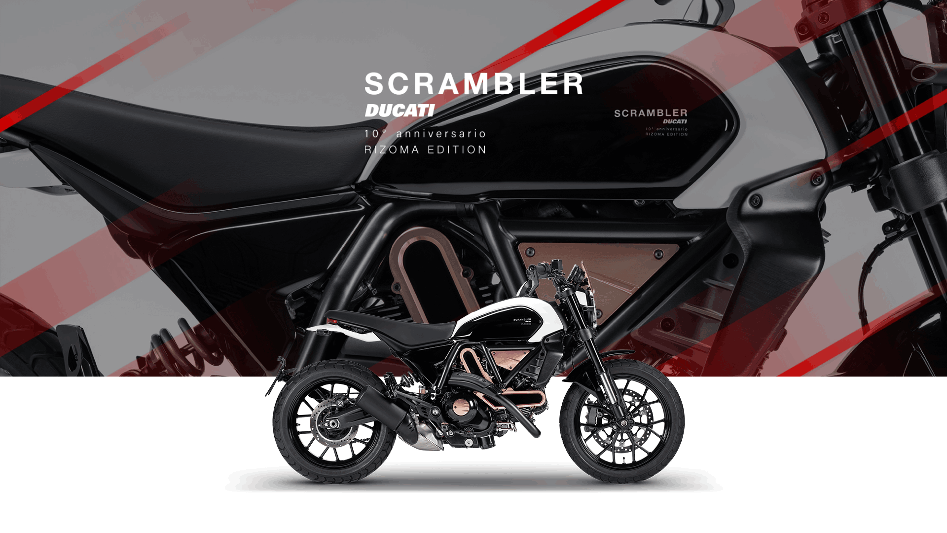 The Scrambler Ducati 10° Anniversario Rizoma Edition celebrates a decade of freedom and style. This exclusive and collectible 500-unit limited edition combines audacity and minimalism in a unique expression of design.
