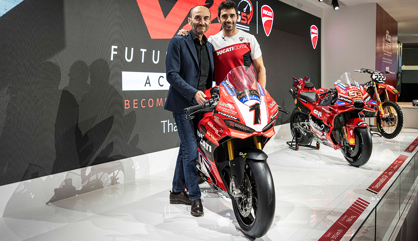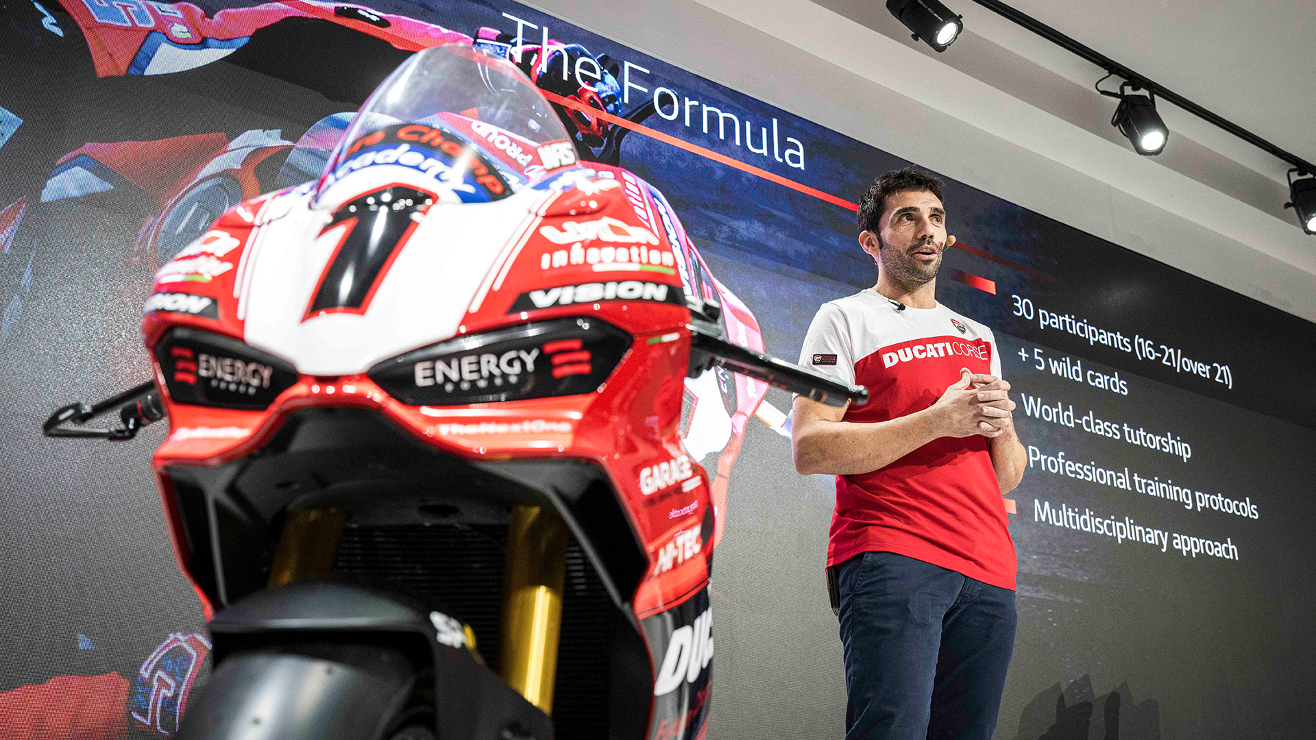 Thanks to professional technicians in the garage, young riders will be able to express their full potential, becoming faster, physically fitter, more experienced and skilled in tuning. The talented riders will be supported by highly experienced riders, such as Ducati MotoGP official test rider and ten-time Italian champion Michele Pirro, and three-time Italian Supersport champion and new CIV-Production Bike champion Davide Stirpe. They will be joined by physical training specialists and managers with extensive experience in the world of racing, who will also train them in communication with sponsors, teams and organisations to prepare them for a full professional career.